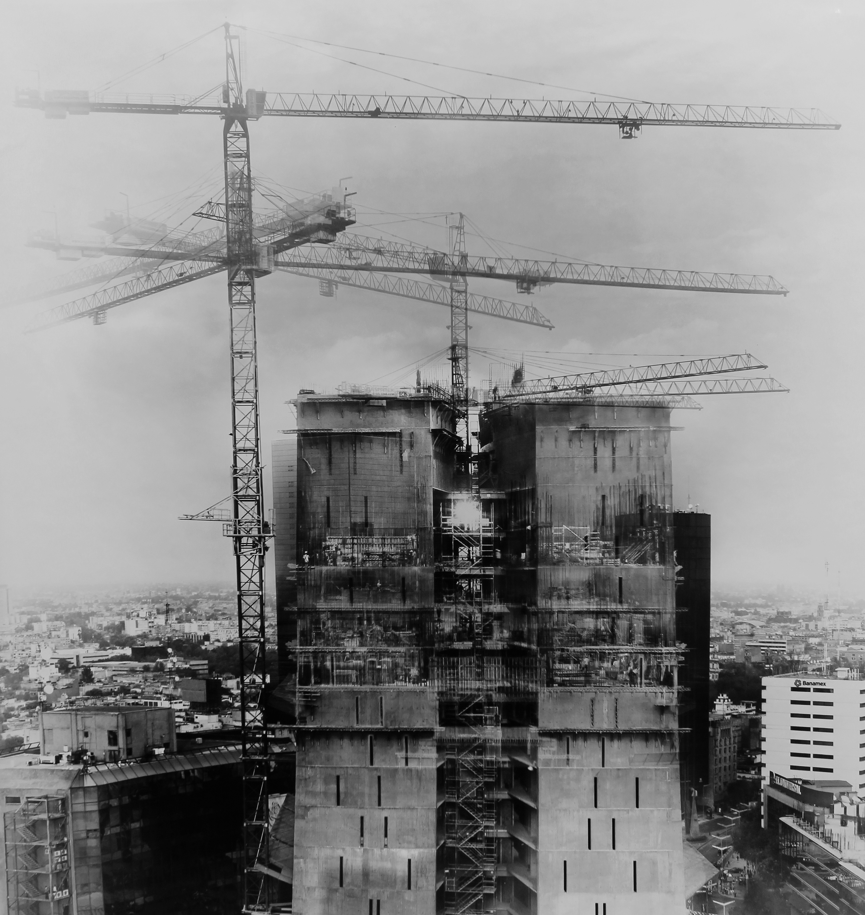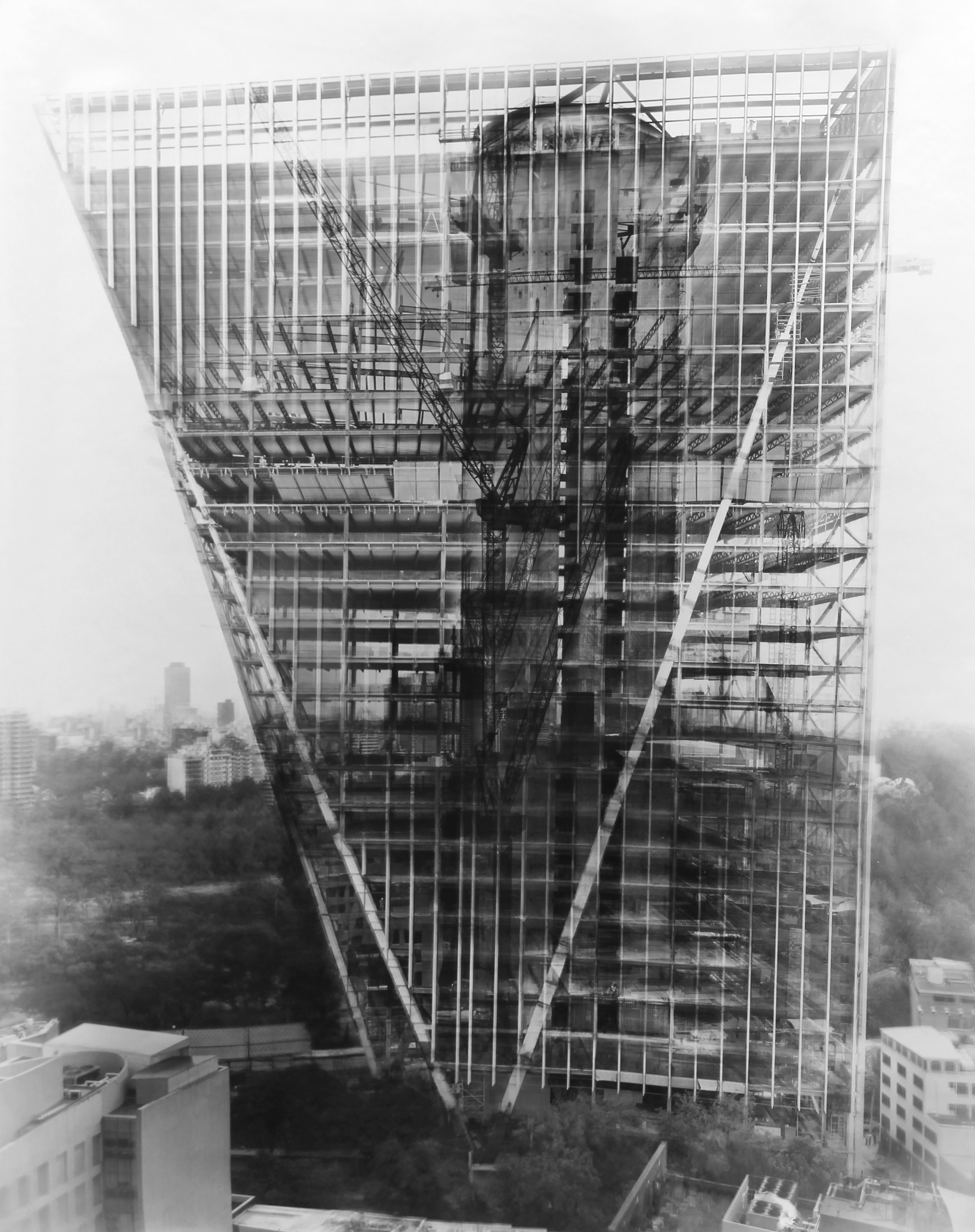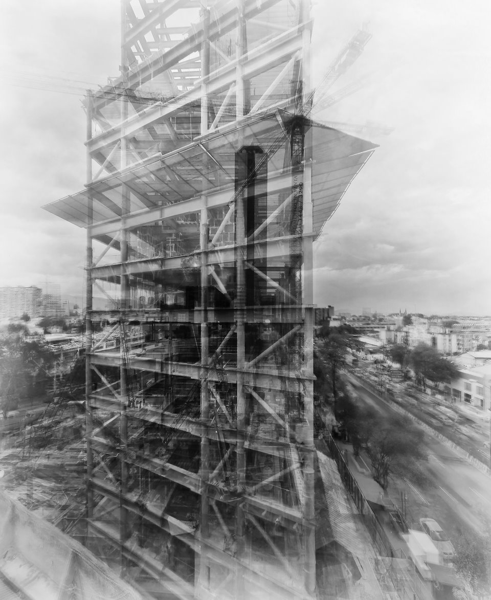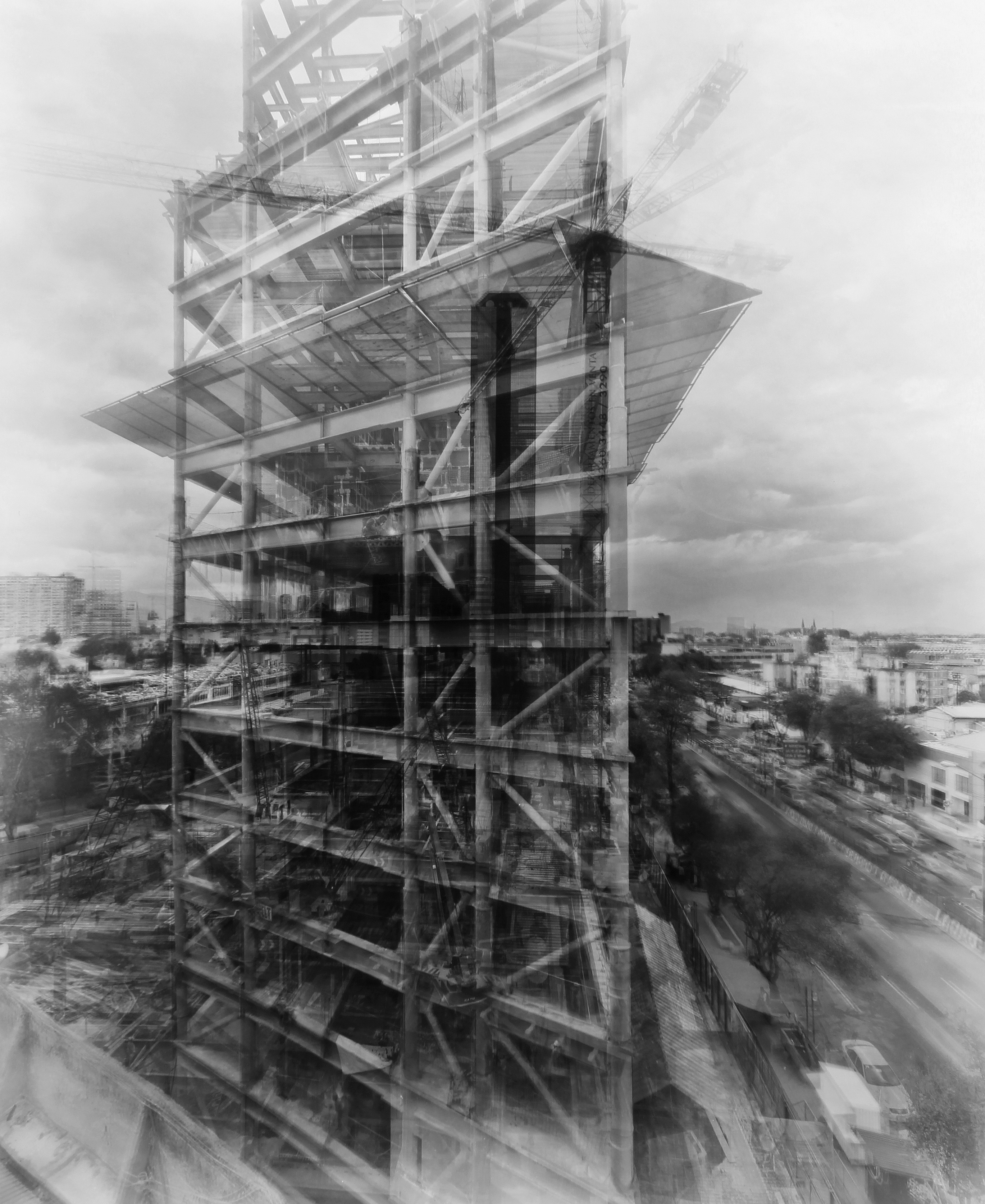 A través de esta experiencia fotográfica que denomino Spectrografía he podido vislumbrar una crónica visual que resume en un solo estímulo visual toda la épica e ingenio que encierra una construcción, a través de múltiples exposiciones sobre una misma placa fotográfica de gran formato diseñada para mantener una misma posición por periodos de tiempo muy largos: meses, años. Los pasados doce años he fotografiado con esta técnica de invención propia el desarrollo constructivo de los edificios diseñados por los más importantes arquitectos mexicanos en CDMX en una investigación visual sobre el espacio y el tiempo.