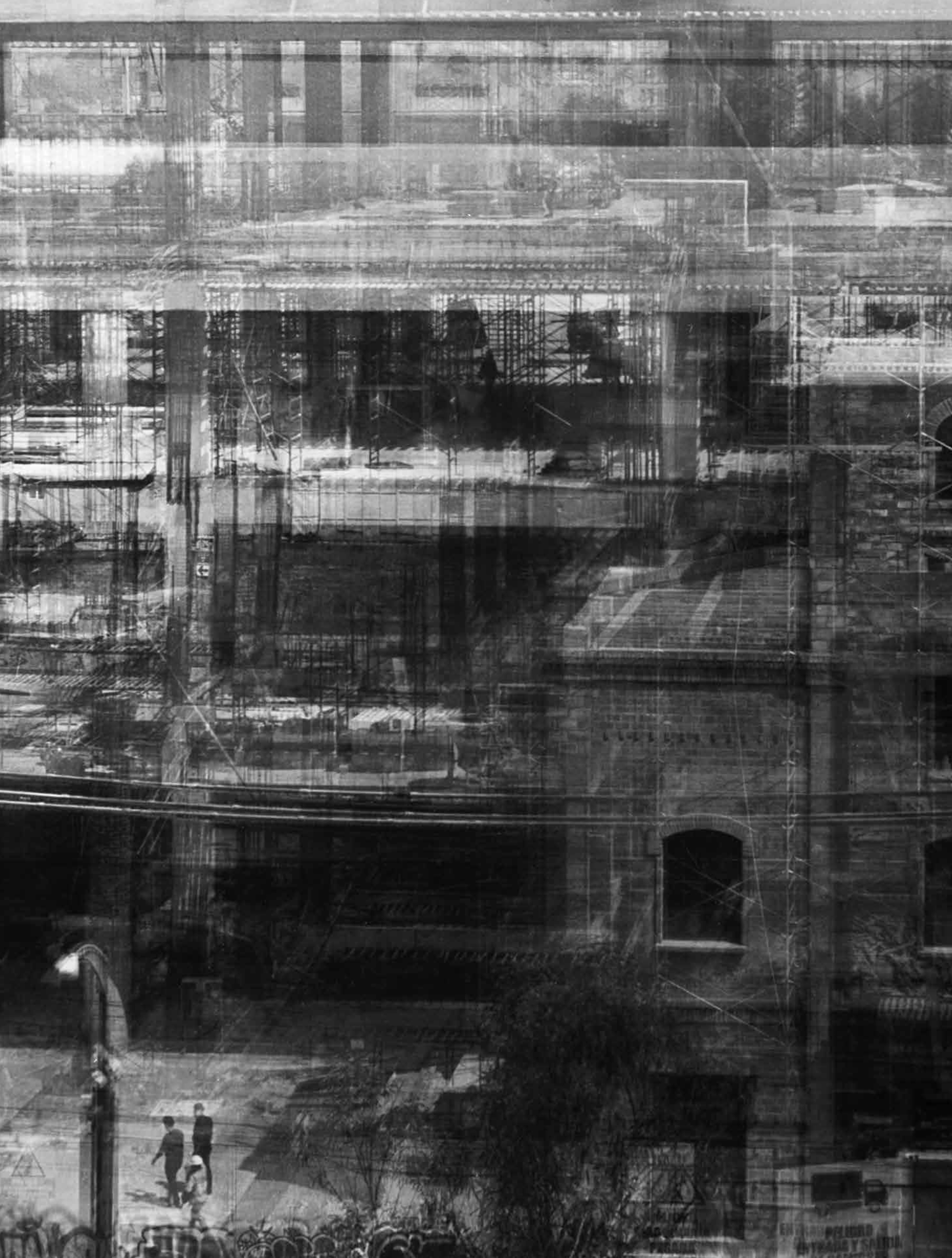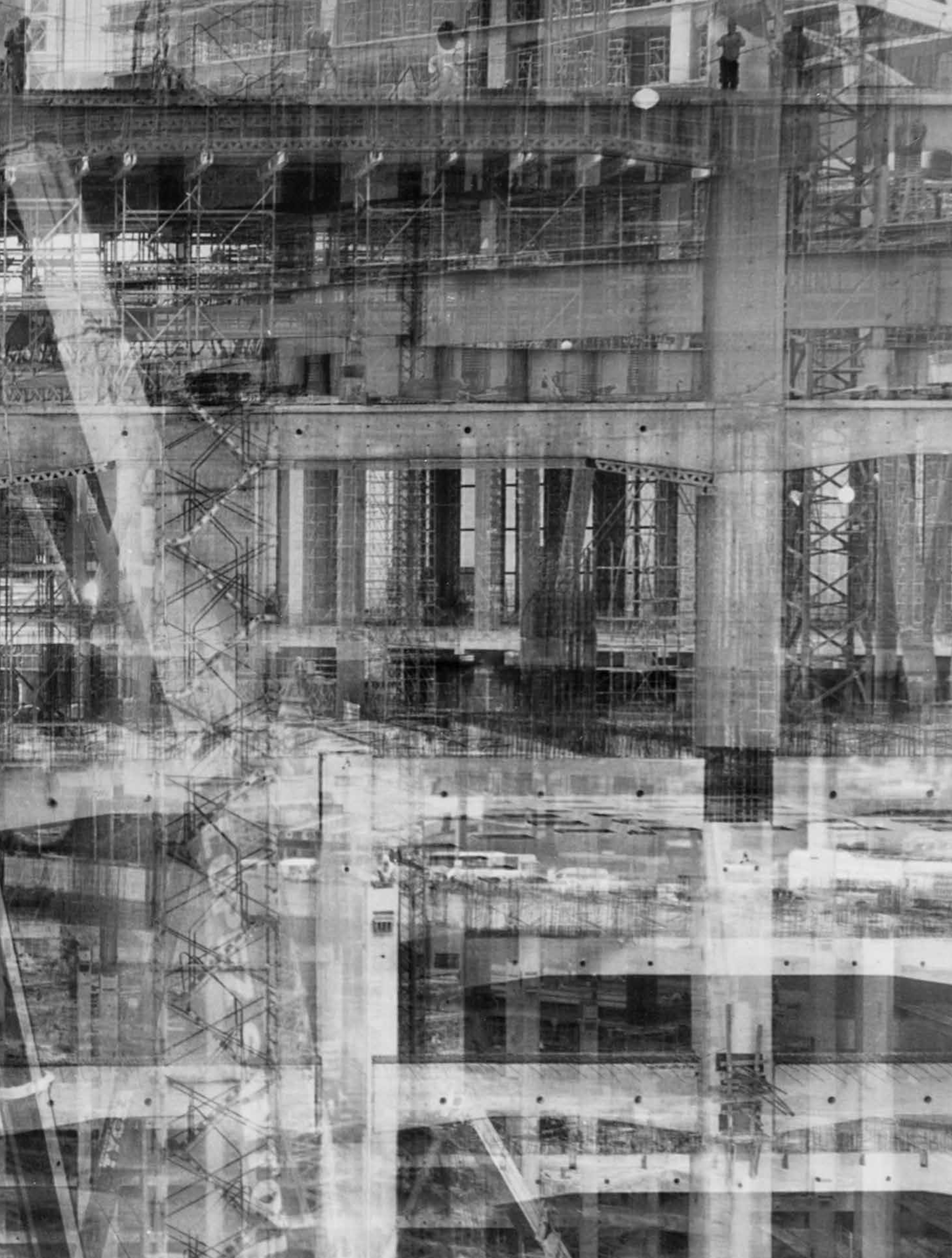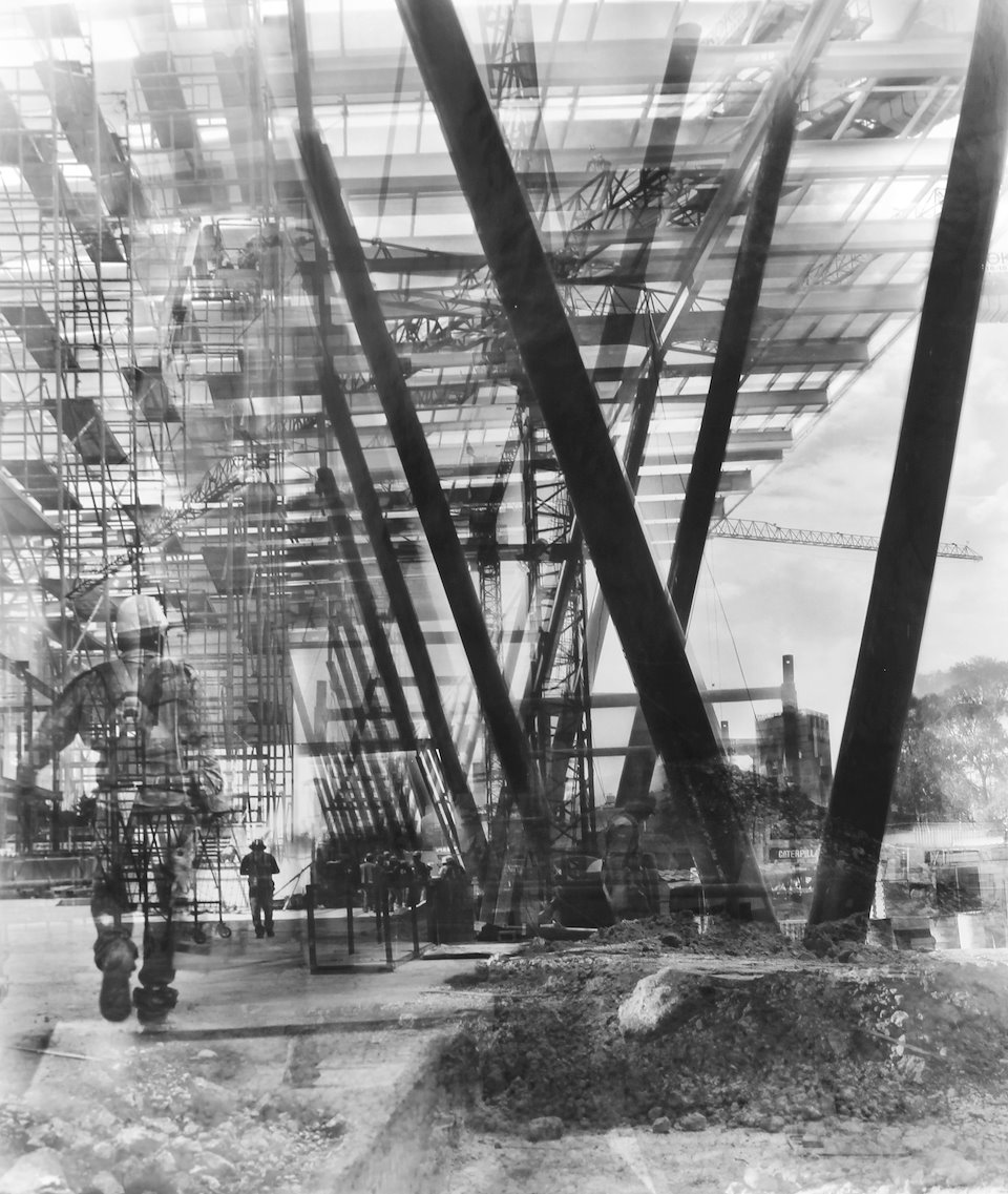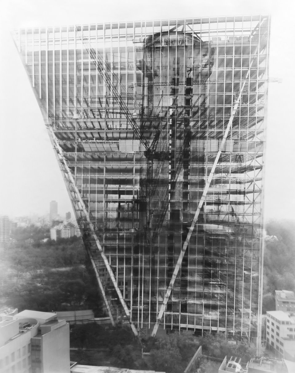 A través de esta experiencia fotográfica que denomino Spectrografía he podido vislumbrar una crónica visual que resume en un solo estímulo visual toda la épica e ingenio que encierra una construcción, a través de múltiples exposiciones sobre una misma placa fotográfica de gran formato diseñada para mantener una misma posición por periodos de tiempo muy largos: meses, años. Los pasados doce años he fotografiado con esta técnica de invención propia el desarrollo constructivo de los edificios diseñados por los más importantes arquitectos mexicanos en CDMX en una investigación visual sobre el espacio y el tiempo.