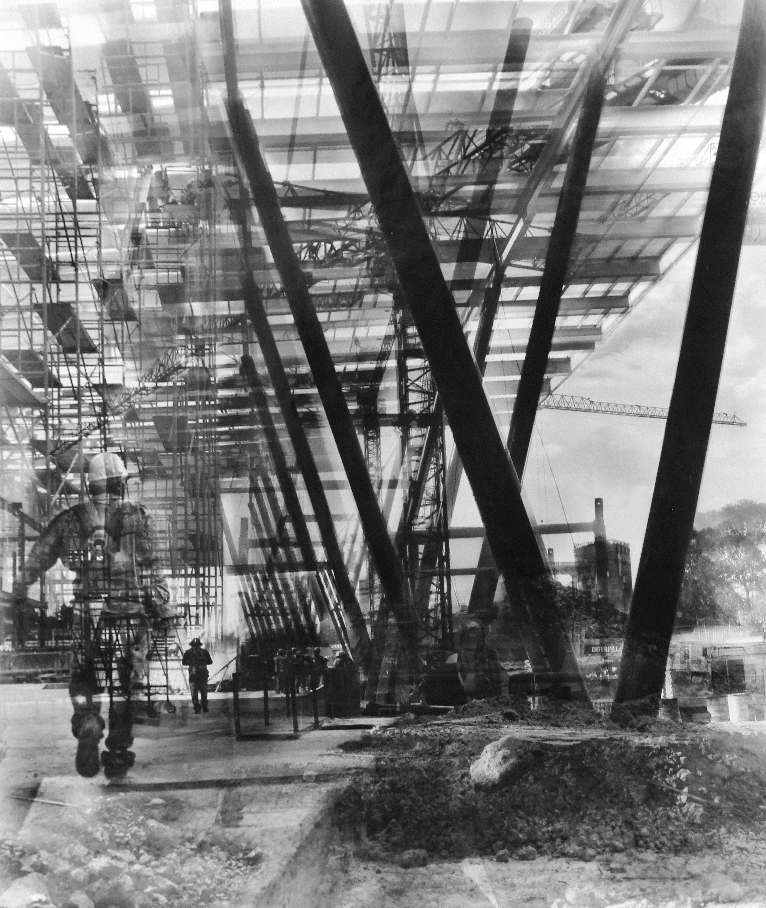 Through the process of spectrography, Tomás Casademunt has created a visual chronicle that summarizes in a single image all of the ingenuity and the processes that attend construction. Using multiple exposures on the same large-format plate from the same position, Casademunt’s photographs illustrate the creation of various buildings designed by iconic Mexican architects.